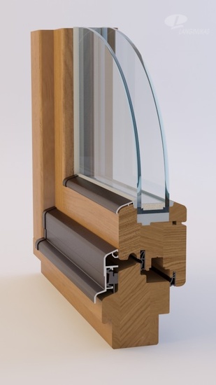 Klijuotos medienos langas 68 mm profilio. Gali būti gaminamas iš pasirinktos medienos rūšies(pušis, ąžuolas, maumedis, raudonmedis) su vienkameriniu 32 mm stiklo paketu.
